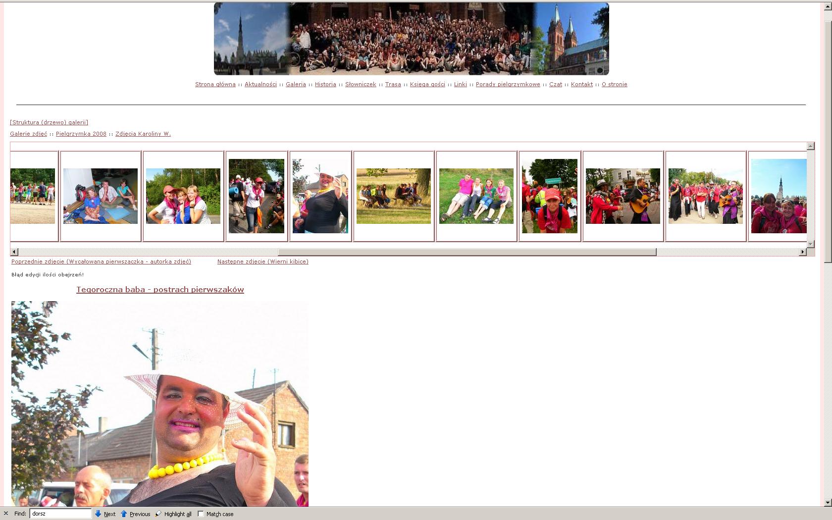 Jeden z naszych czytelników znalazł w czeluściach internetu galerię Pieszej Pielgrzymki Włocławskiej z roku Pańskiego 2008, w której to galerii natknął się na wykonane podczas ubiegłorocznej pielgrzymki zdjęcie włocławskiego diecezjalnego duszpasterza akademickiego, ks. prof. Witolda Dorsza (które poniżej reprodukujemy) zatytułowane „Tegoroczna baba – postrach pierwszaków”.